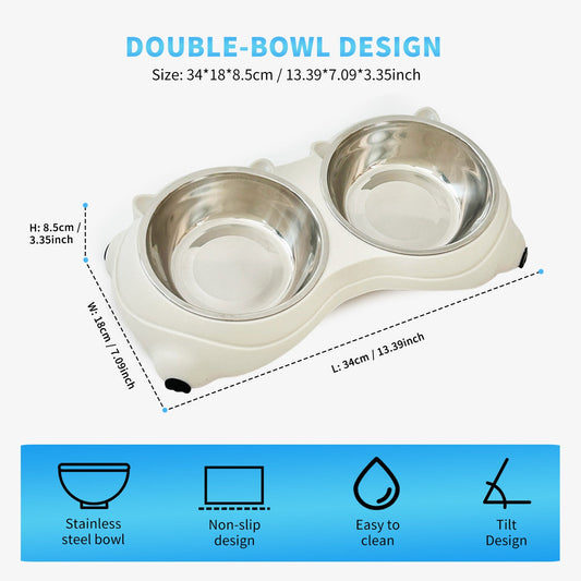 Double Stainless Steel Pet Bowls with Non-Slip Base